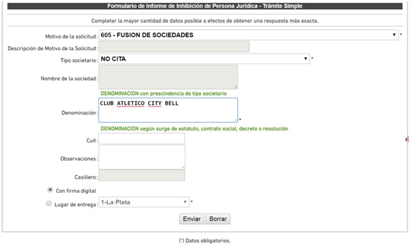 Importante: Esta opción deberá ser utilizada cuando la solicitud verse, por ejemplo, sobre Cooperativas, Fundaciones, Asociaciones, entre otras.